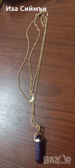 Две висулки със смарагд и аметист, с обков и верижки в златен цвят, цена за двете 29.99лв, цена за 1 брой 17,99лв