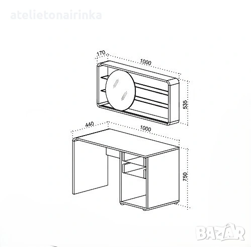 Размери тоалетка: 100/ 44/ Н75 см;