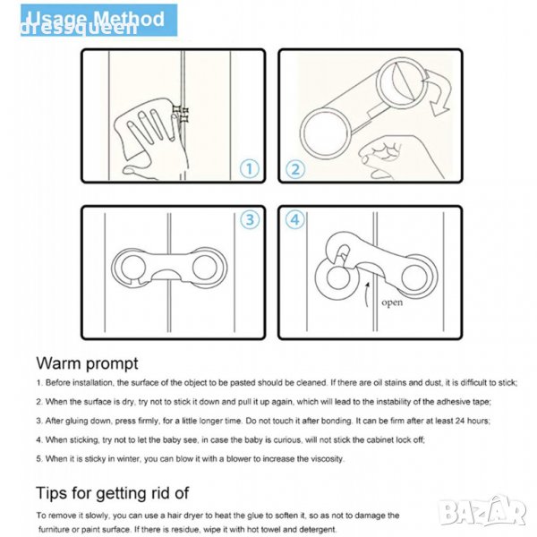 Предпазителите осигуряват надеждна защита и безопасна домашна среда, предотвратявайки отварянето на шкафове, чекмеджета, тоалетки и други. Те предоставят лесен монтаж, без пробиване, посредством специална двойно лепяща лента, която не оставя следи след тяхното отстраняване.