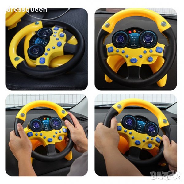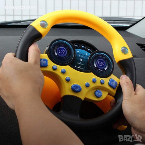 Безкрайно въртене на 360 градуса, мултифункционален електрически волан за малко дете, което се преструва, че шофира кола. Предлага се със страхотна музика и мигаща светлина, превключвател, стрелков циферблат, скоростен циферблат, температурна скала, светлина и звука за стартиране на автомобила.