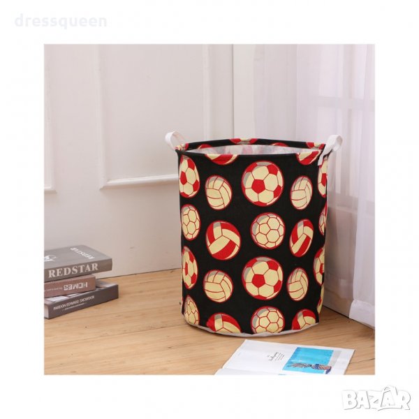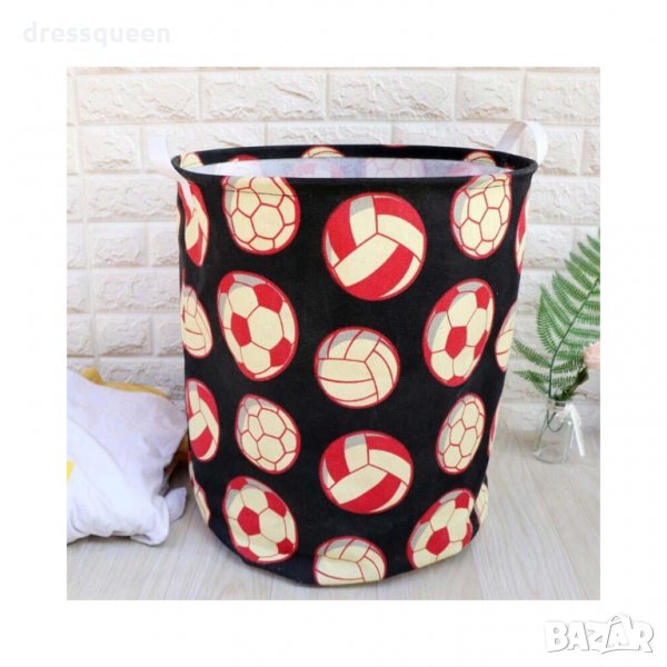 Голям кош за съхранение на дрехи и играчки с десен на Футболни топки. Кош за съхранение на дрехи и играчки. Практично и красиво решение за детската стая. Сега вече имате лесен начин да разтребите играчките преди лягане или да осигурите допълнително пространство за съхранение под детското легло. Подходящи за съхранение на спално бельо, играчки и игри, дрешки, пелени и всички малки предмети, които имат нужда от покрив