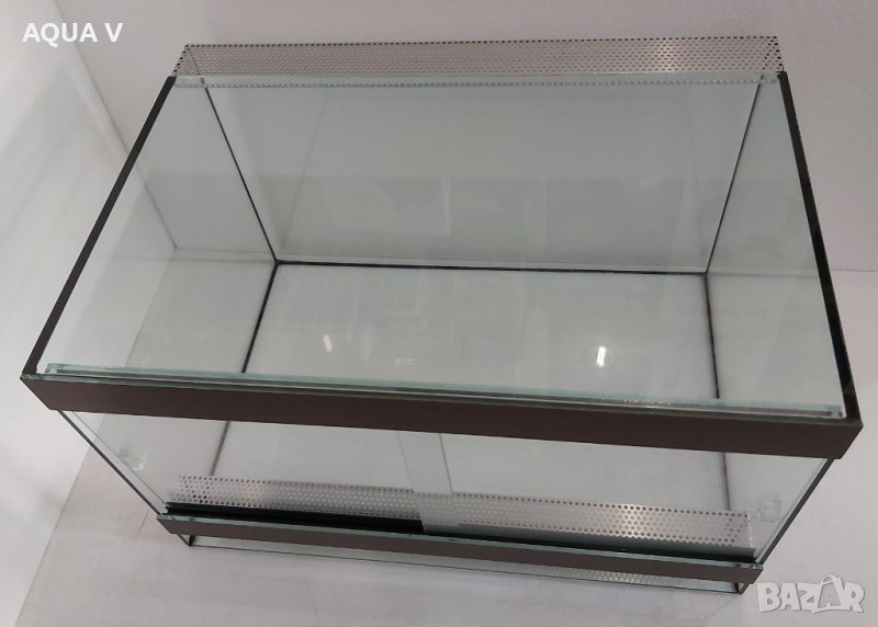 Терариум с размери 90/40/40см с плъзгащи стъкла отпред и метална мрежа за вентилация.