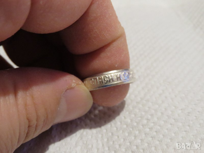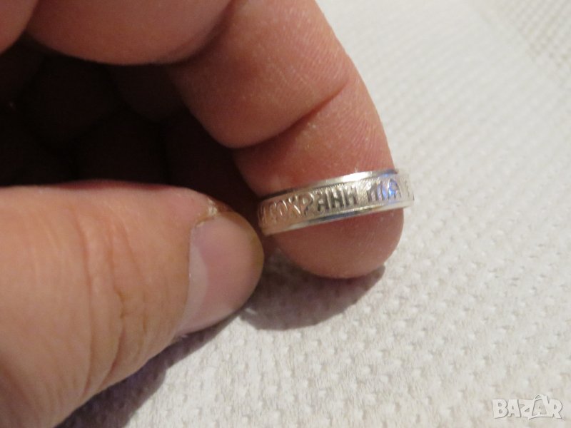 Стариннен сребърен пръстен с думи към Исус в релефен надпис " Господи, спаси и сохрани мя .- за да имате винаги връзка с бога и да ви пази и закриля нашия спасител Исус .