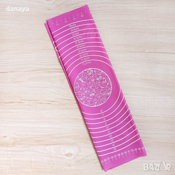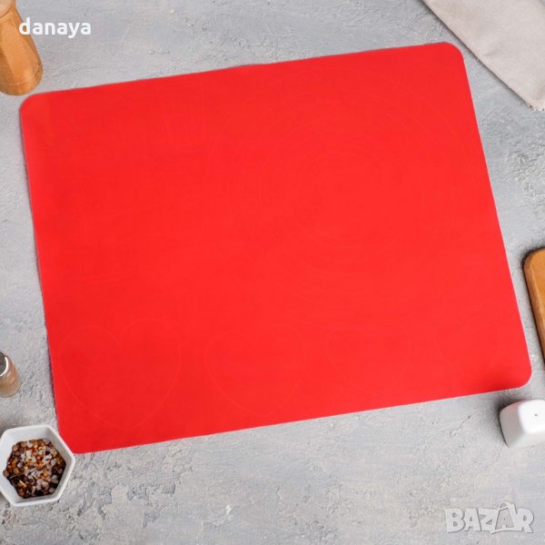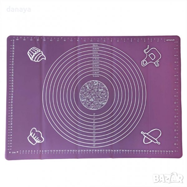 Силиконова подложка за месене, точене и печене на тесто и всякакви други хранителни продукти. Кухненски аксесоар, с който месенето ще се превърне в лекота, тъй като след работа плотът ще остане чист. Подложката е оразмерена, което олеснява приготвянето на торти с идеален кръг или други сладкиши и печива. Антихлъзгаща основа. Освен това с подложката лесно ще оформите любимото руло Стефани или сладко руло. Използвайте я и като подложка за печене на сладки или други ястия.