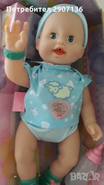 Бебе с много функции и батерии, плаче, храни се с шише,смее се,може да движи само ръце и крака → Обява 34923469