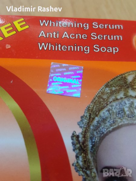 Комплект >разкрасяващ крем Шийла + серум с избелващ ефект + серум който изчиства акне + сапунче с избелващ ефект.>Поддържа ви свежи и млади. Бърз ефект на избелване на кожата.>Намалява луничките, бръчките, старческите петна осигурява кожата без петна и й придава гладкост.>Предпазва кожата ви от вредните uv - a и uv - b лъчи.>Придава на кожата ви по-млада, по-ярък, подхранен и блестящ вид.Оригинален продукт с холограма. Цена на целият комплект е 12 лв. и 90 стотинки. За количества на едро, предлагаме специални оферти. Изпращаме чрез Еконт или Спиди, с опция за преглед. Куриерската услуга е за сметка на клиента. Моля, разгледайте и другите ми обяви.