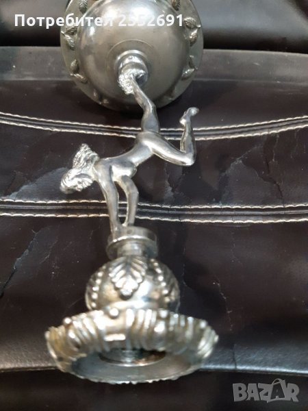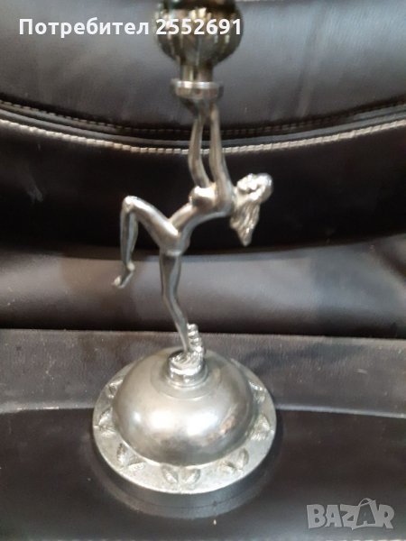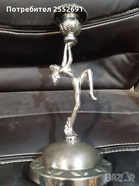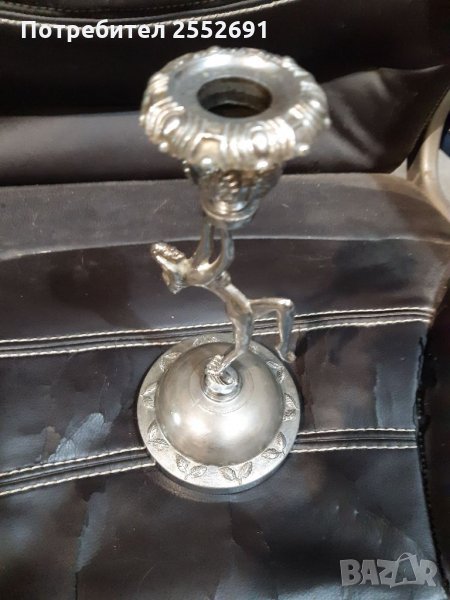 Английски ХРОМИРАН свещник- "Голо тяло " Височина-22см. Диаметър в основата- 10см. Диаметър в горната част-5,2см. Наличие на маркировка с номер - REG 873891
