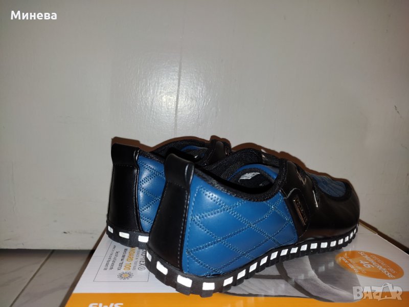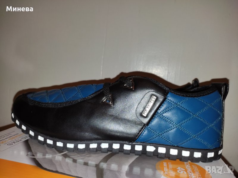 A&B мъжки спортно-елегантни обувки от висококачествена кожа произведени във Виетнам. В чудесно съчетание на черно и синьо, много леки и удобни. Номер 43 и дължина на стелката 26,5 см.