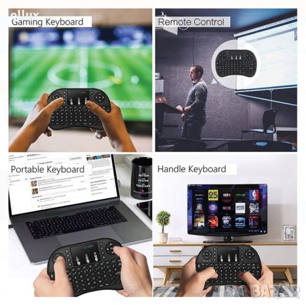Модела е с вграден високочувствителен интелигентен тъчпад, който може да се използва в пълния си обхват. Той е малък, преносим, лесен за транспортиране и работа и не е необходимо да инсталирате драйвери. Съвместим е с мобилни телефони, компютри, лаптопи, таблети, Smart TV, Adroid TV box, IPTV, проектори и много други. Освен това има мултимедийни клавиши и клавиши за игри. Работно разстояние 10m макс.