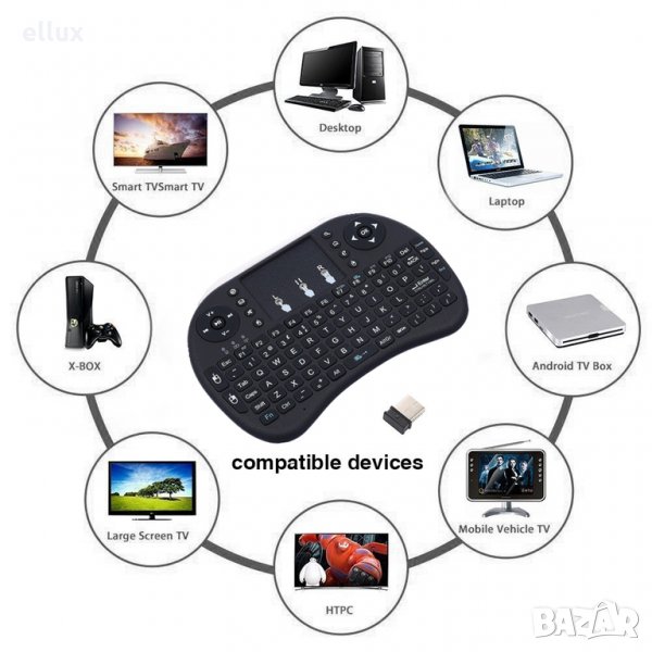 Мултифункционална клавиатура с 92 клавиша, 2.4Ghz тъчпад и 2.4GHz USB приемник.