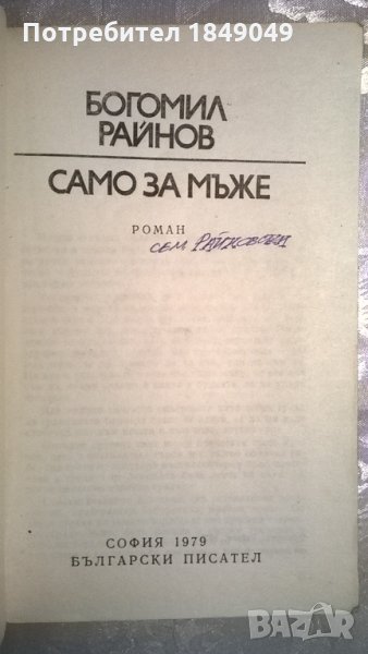 Богомил Райнов "Само за мъже" - 0.50 лв./1979г.,меки корици,забележки по кориците/.