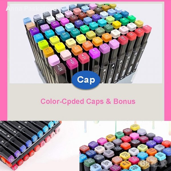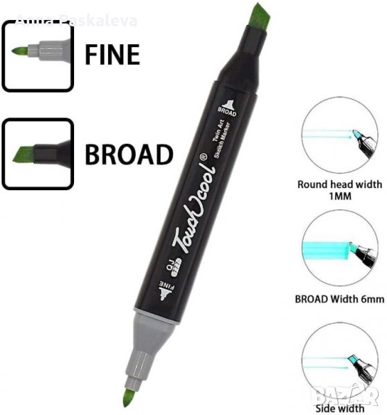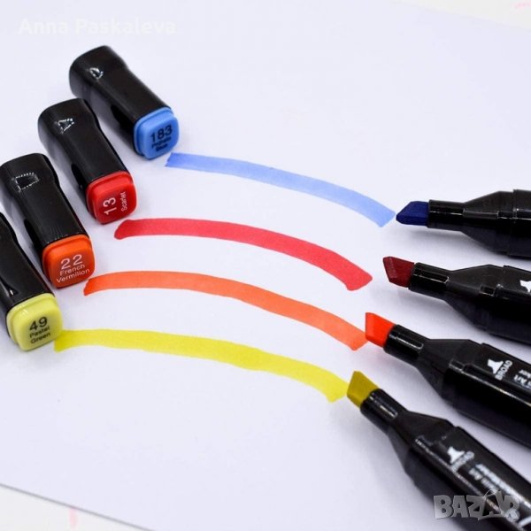 Маркерите са с ергономичен дизайн за по-удобен захват. Иновативният и издръжлив дизайн на писците гарантира, че те дълго време ще запазят твърдината си и няма да се износят. Изработени са от висококачествен пластмасов материал , който е нетоксичен и издръжлив. Комплектът се състои от 60 броя маркери с различни цветове. В единия си край притежават тънък, а в другия – скосен писец. Благодарение на двата си писеца с различна форма, маркерите позволяват на художниците и дизайнерите по-широк диапазон от дебелини на линията. Потокът на безмирисното мастило е контролиран, което предотвратява евентуалното му разтичане или размазване. Мастилото е на алкохолна основа и не разтваря вече принтирано тонер мастило, което дава възможност за ярко оцветена творба върху принтирани повърхности. Също така дават възможност на творците да използват много и различни техники като им предоставят по-голяма свобода в изразяване на техните идеи. Арт маркерите са подходящи за илюстратори, аниматори, за хората, занимаващи се с архитектурно рендиране или интериорен дизайн.