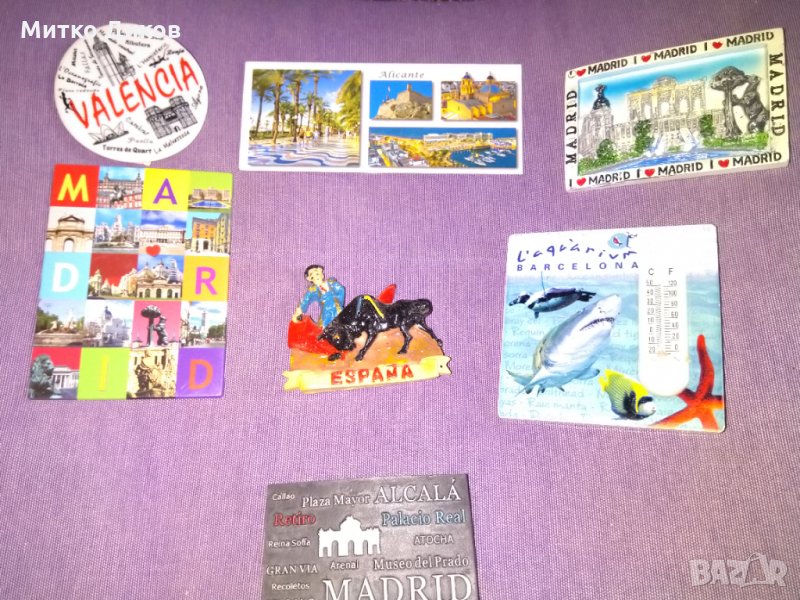 Магнити Испания-на вторият ред вляво на Мадрид и вдясно на Барса сс термометър са продадени-в много добро състояние-изпращам по еконт-по спиди