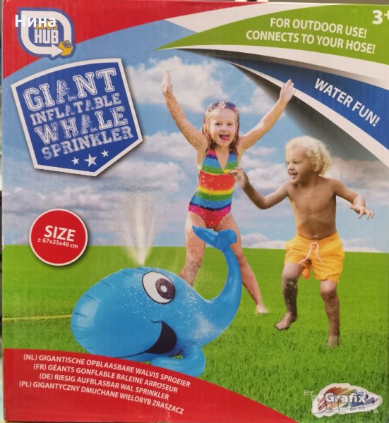 Пригответе се за най- доброто лято с идеална играчка за пръскане на вода с форма на гигантски кит. Тази играчка с пръскачки ще ви помогне да победите горещините на лятото и ще вдъхнови часове вълнуваща игра на децата. Лесно се настройва, само за минути – просто свържете към стандартен градински маркуч и той ще се надуе сам! Стабилна основа за безопасна игра – без преобръщане. Приятелски вид, който момчетата и момичетата ще харесат, с гигантски размер (67х35х40 см) Меки, но издръжливи материали. Една отлична идея за летни партита в градината.