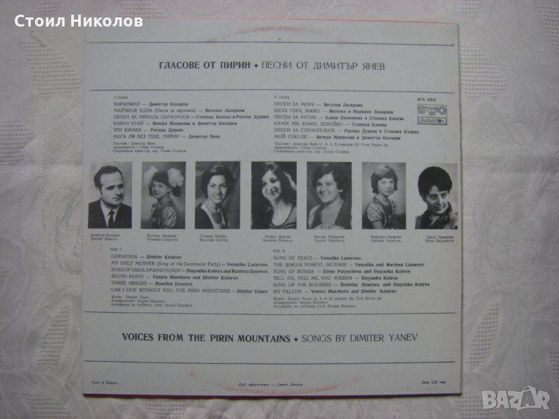 Грамофонна плоча - ВТА 10329 - Гласове от Пирин. Песни от Димитър Янев