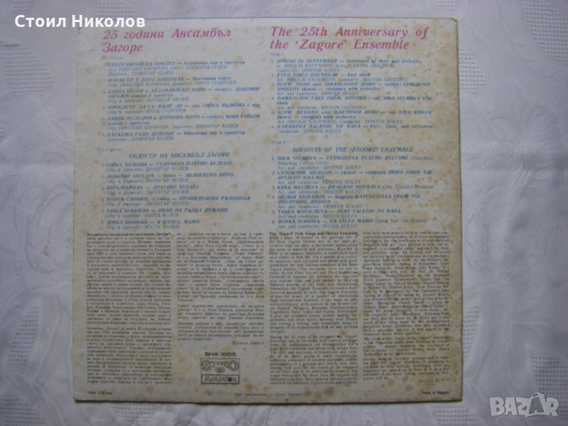 Грамофонна плоча - ВНА 10615 - 25 години ансамбъл Загоре