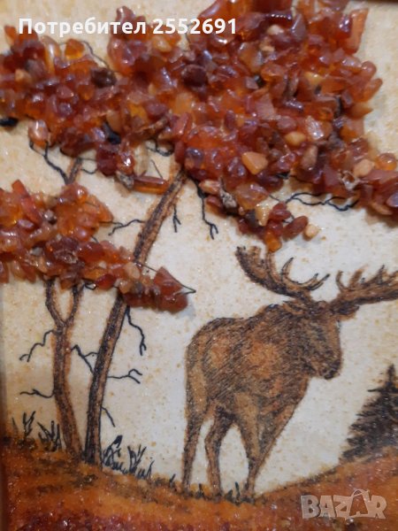 Ръчно изрисувана и изработена картина с КЕХЛИБАР . Дървена рамка. Размери 18/15 см.