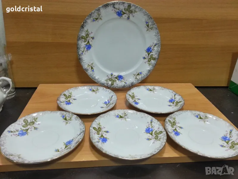 Полски фин порцелан синя роза голяма чиния и 5бр чинийки -75лв сервиз комплект сет лот ретро арт декор винтидж колекция стари антикварни предмети обзавеждане за дома и семейството подходящи за подарък за ценители и колекционери