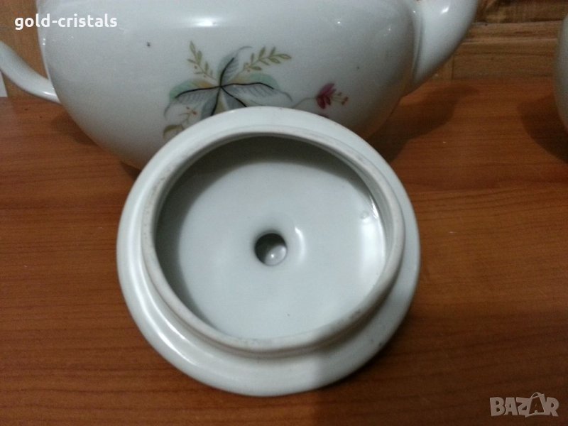 Стар български порцелан чайник и латиера без забележки с златен кант ретро арт декор винтидж колекция стари антикварни предмети обзавеждане за дома и семейството подходящи за подарък за ценители и колекционери