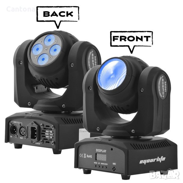 Контрол и програмиране: автоматичен, по музиката, Master/Slave, DMX 512 (5 или 13 канала)