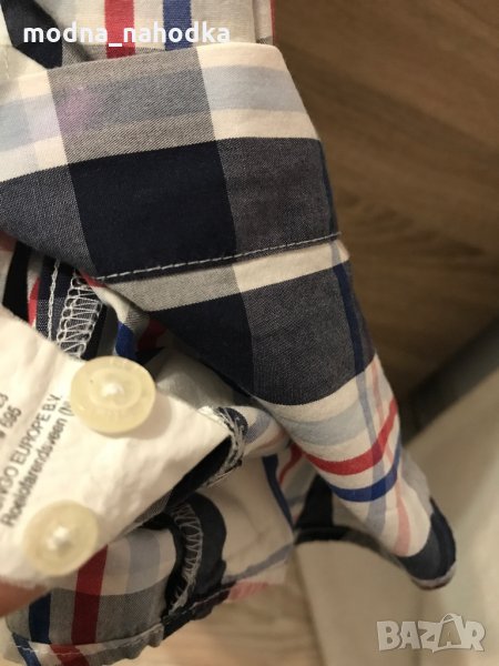 Мъжка карирана риза с къс ръкав, размер M. Има две пришити резервни копчета.