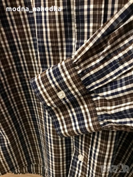 Мъжка карирана риза с дълъг ръкав Tchibo, размер 43/44. Има 2 пришити резервни копчета. Яката може също да се закопчава с копчета (виж снимките).