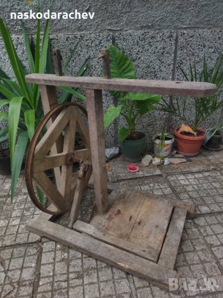 Автентичен дървен чакрък с крачен механизъм, на над 100 години, запазен с работещ механизъм.