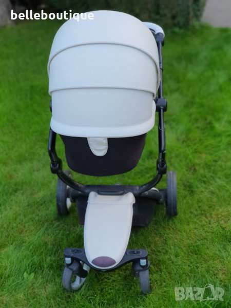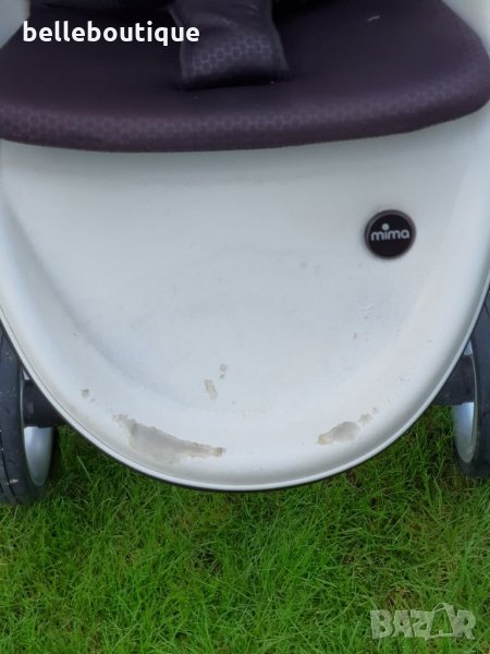 Комплектът включва: шаси, сенник, седалка, дъждобран, комарник, който е включен в цената, а в магазина се продава отделно, матрак за седалка, колани с омекотители, покривало и матрак за коша за новородено. Количката е в отлично състояние, грижливо поддържана, с дребно ожулване в зоната на краката, което е показано на снимките. Към количката предлагам и оригинална чанта Mima. Цена - 1500 лв.