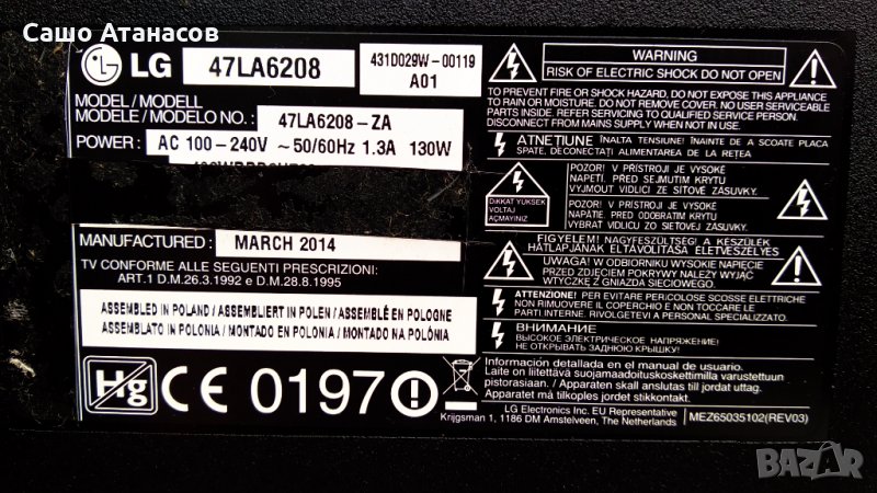 LG 47LA6208 с счупена матрица ,LGP4750-13PL2 ,EAX64797004(1.1) ,6870C-0444A ,TWFM-B006D ,EBR76405801
