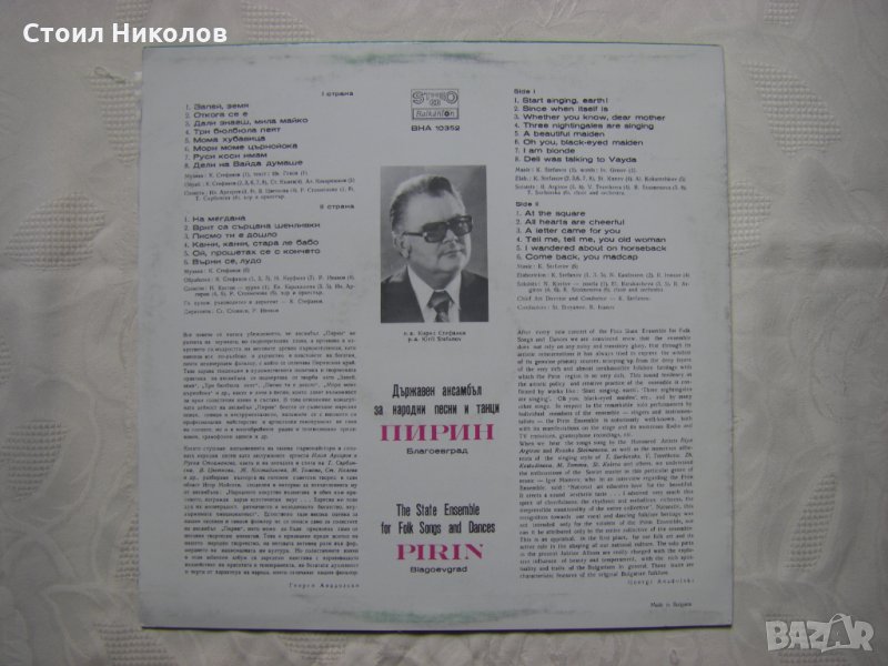 Грамофонна плоча - ВНА 10352 - Държавен ансамбъл за народни песни и танци Пирин - Благоевград - Жива като земята