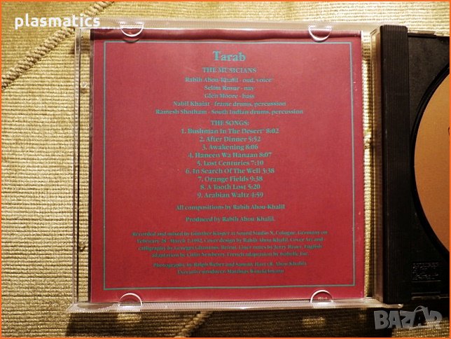 Rabin Abou-Khalil – Tarab’93 – фабричен диск, издание на M&A group-Russia. Eдин от поредните проекти на родения в Бейрут композитор и изпълнител Раби Абу-Халил, познат и на българската публика с участието си като гост на варненския джаз вестивал. Албумът е изтъкан от преплитащи се ритми в стил етно-джаз, ориентал и авангардно композирана музика - 8лв.