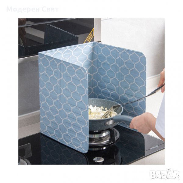 - Подхожда на всяка горелка: удобният щит има три шарнирни панела, които се настройват, за да се поберат на горелка или тиган с всякакъв размер.