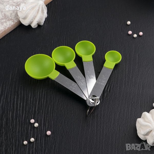 Комплект от 4 броя мерителни лъжички събрани в ринг, без да се разпиляват в шкафа. Всяка от лъжичките е с различен размер – 15мл, 7,5мл, 5мл, 2,5мл. Изработени са от здрава пластмаса и неръждаема стомана.