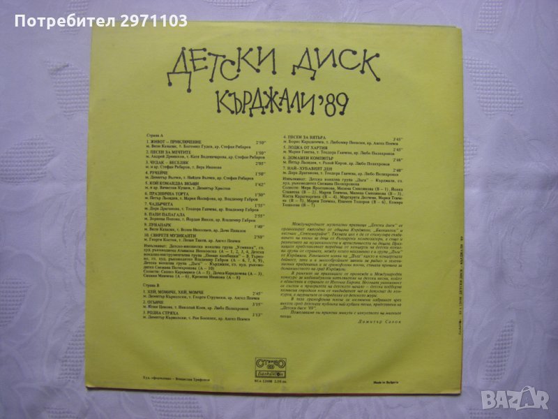 Грамофонна плоча - ВЕА 12608 - Детски диск Кърджали '89