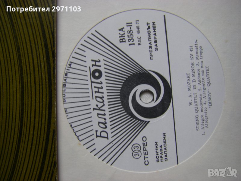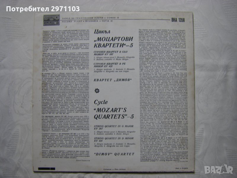 Грамофонна плоча - ВКА 1358 - В. А. Моцарт. Квартети. Изпълнява Димов квартет - 5