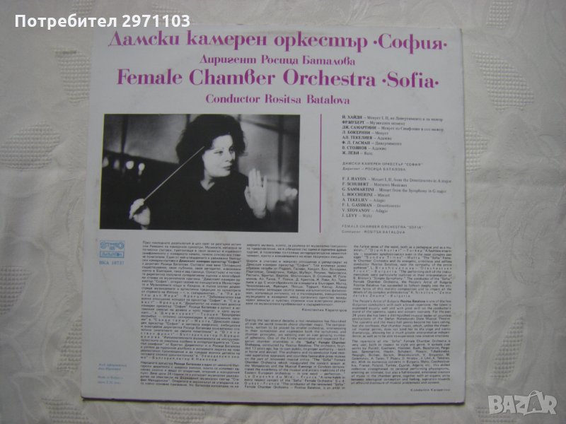 Грамофонна плоча - ВКА 10737 - Дамски камерен оркестър "София", диригент Росица Баталова