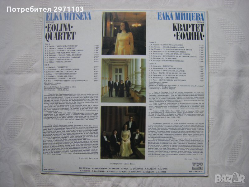 Грамофонна плоча - ВКА 11768 - Елка Мицева и квартет "Еолина"