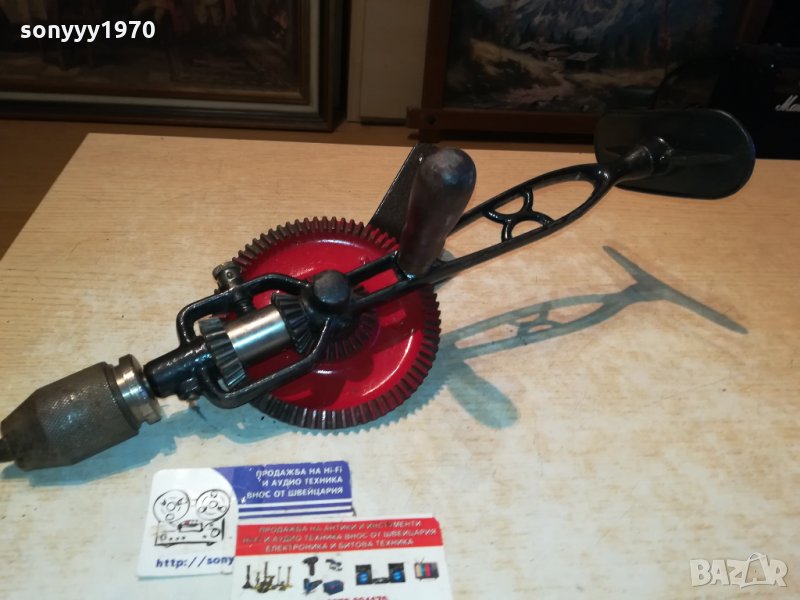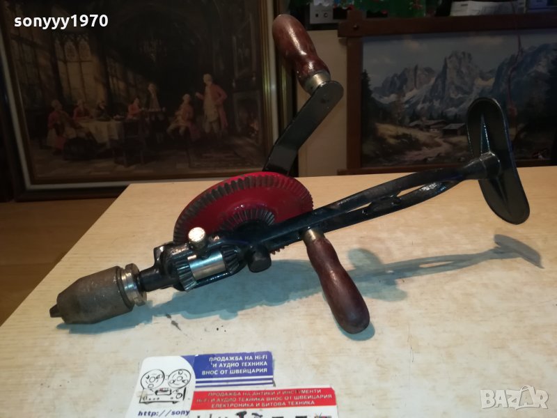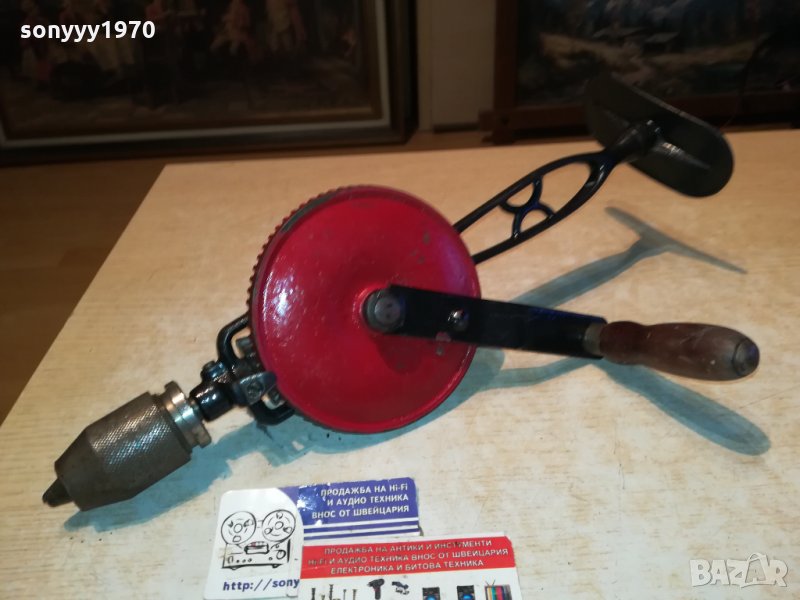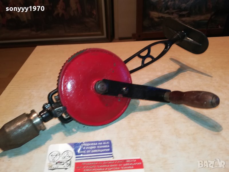 GRAHNDE PETITE-SWEDEN-АНТИКА-РЕТРО ДРЕЛКА 40СМ ОТ шВЕЦИЯ-ЗДРАВА ЗА КОЛЕКЦИЯ ДЕКОР ПОЛЗВАНЕ-МЕТАЛ И ДЪРВО-пращаме със спиди или еконт с преглед и тест след превод на капаро за куриерската услуга поради зачестили некоректни потребители-поръчки само тук в саита! по телефона и със смс не! краини цени! бартери не правиме! ПАРИ НЕ ВРЪЩАМЕ! всеки ден нови неща-още 2-3 наши обяви тук