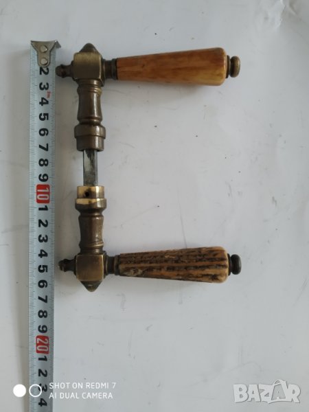 стари дръжки за врата-комплект от бронз и дърво,размери и състояние видни на снимките,