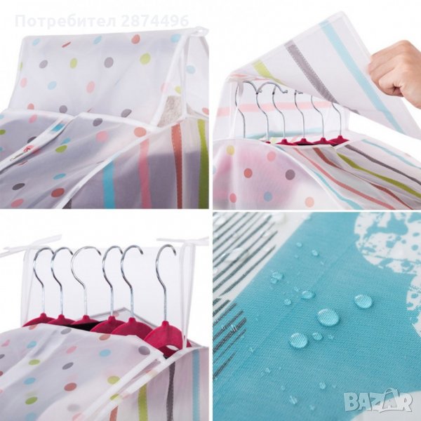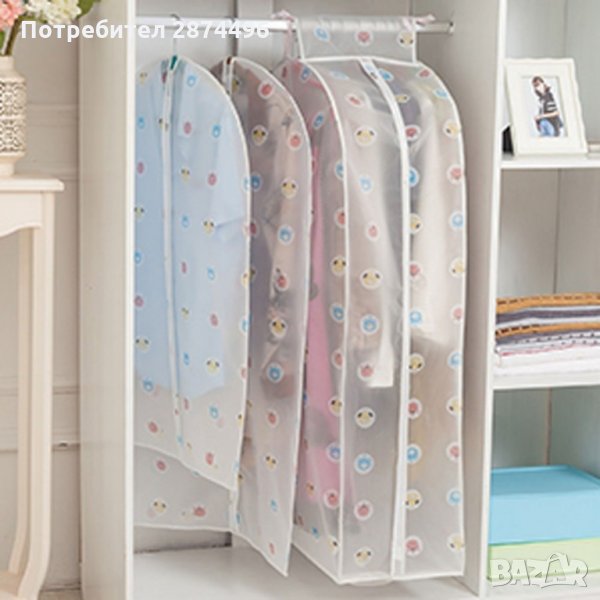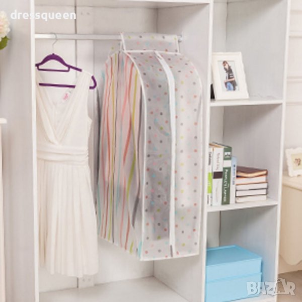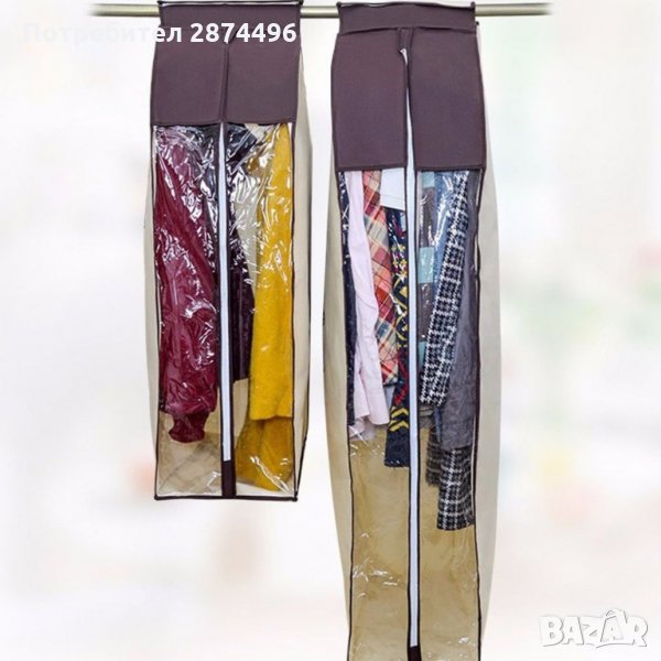 Калъфите се предлагат в два размера - S 90x60x30см (подходящ за съхранение на сака, ризи, блузи, панталони и други по-къси дрехи) и L 120x6030см (подходящ за съхранение на рокли и палта).