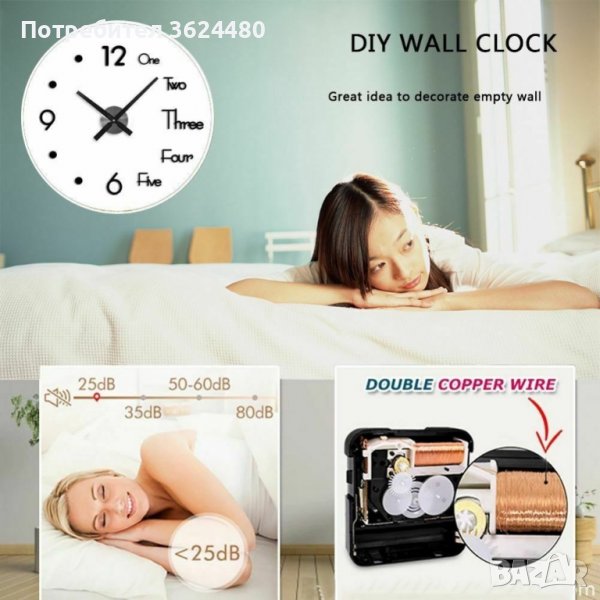 Този часовник е с безшумен и точен часовников механизъм. За да го сглобите лесно и правилно, трябва да поставите листа с образеца за разположението на часовника върху стената и да го закрепите с малко тиксо, за да е неподвижен. След това да очертаете с молив и точици празните места на цифрите на стената.
