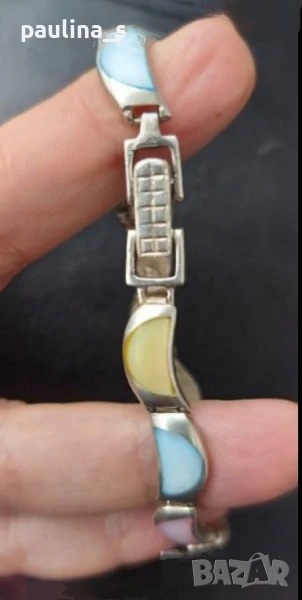 2️⃣. Масивна сребърна гривна проба 925 с три цвята седеф - розов, син и жълт, без цветя. Цената е крайна, без пазарлъци 97 евро. Гривната е изключително красива, няма забележки, не се продава на грамаж и цената не се коментира. Дължина 18см. Моля, разгледайте и другите обяви и последвайте профила. Приятно разглеждане. Може да създадете пакет и да използвате доставката, тогава ще направя отстъпка от общата цена. При единична поръчка, цената не се коментира по никакъв начин, продажбата е с благотворителна цел! За лечение! Благодаря за вниманието и отделеното време 🙂