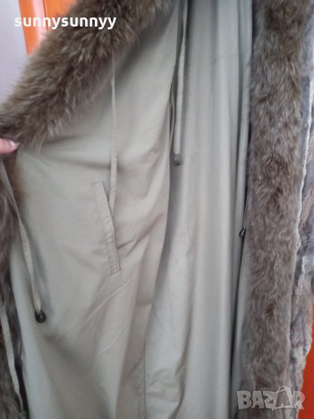 Палтото е като ново.Обличано 2 пъти по повод.Дълго с 2 лица.Може да се носи и обратно като парка с кожата отвътре.Чинчила с лисица.Масленозелено на живо много хубаво.Размера е 40.Но е такъв модел че става за М.Л и Хл като размер.Купувано от Италия за 5000 евро.Може размяна и лек коментар на цената