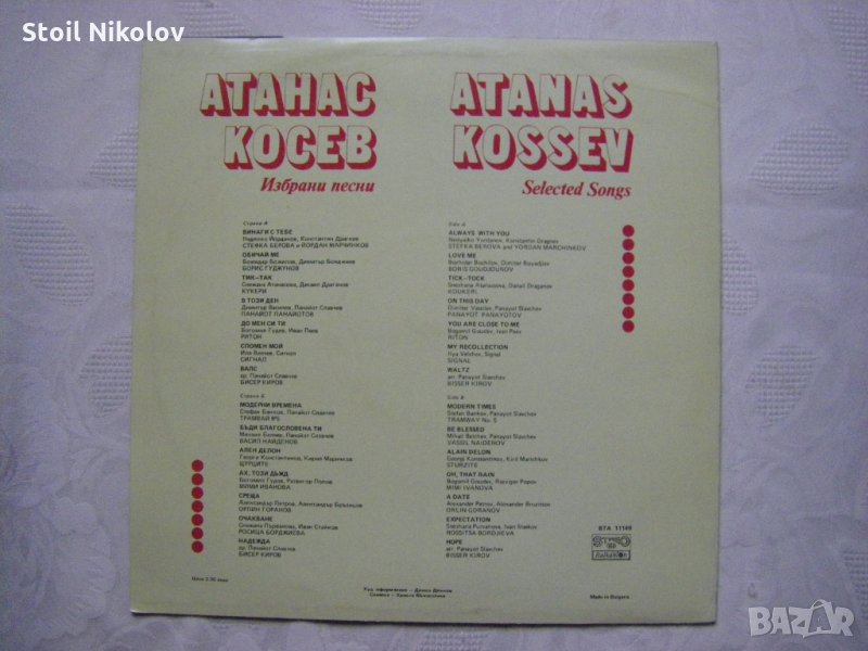 Грамофонна плоча - ВТА 11149 - Избрани песни - Атанас Косев