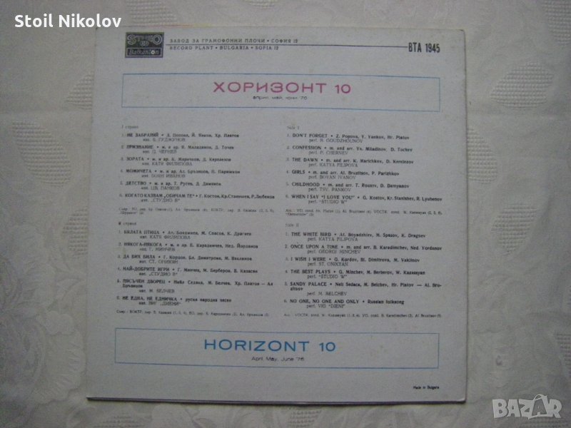 Грамофонна плоча - ВТА 1945 - Хоризонт 10 - април, май, юни 76