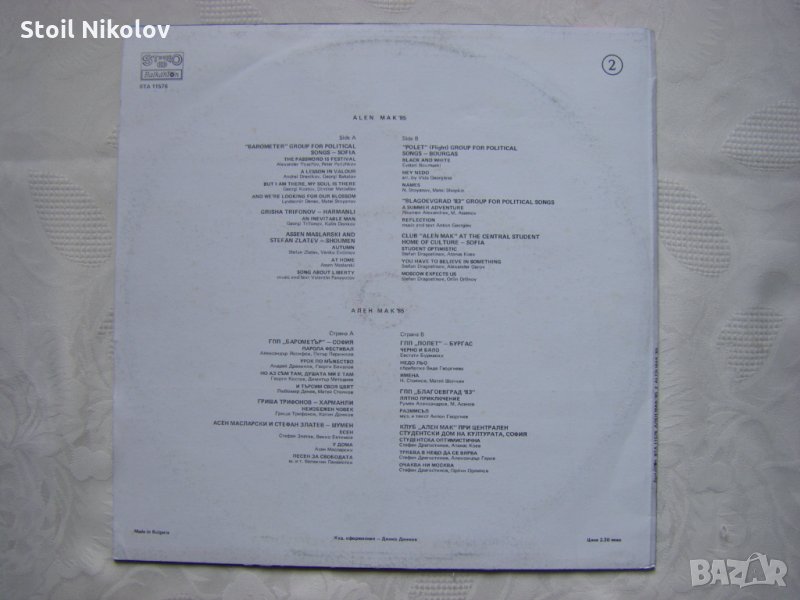 Грамофонна плоча - ВТА 11576 - Фестивал на политическата песен "Ален мак" (1985; Благоевград) - втора плоча