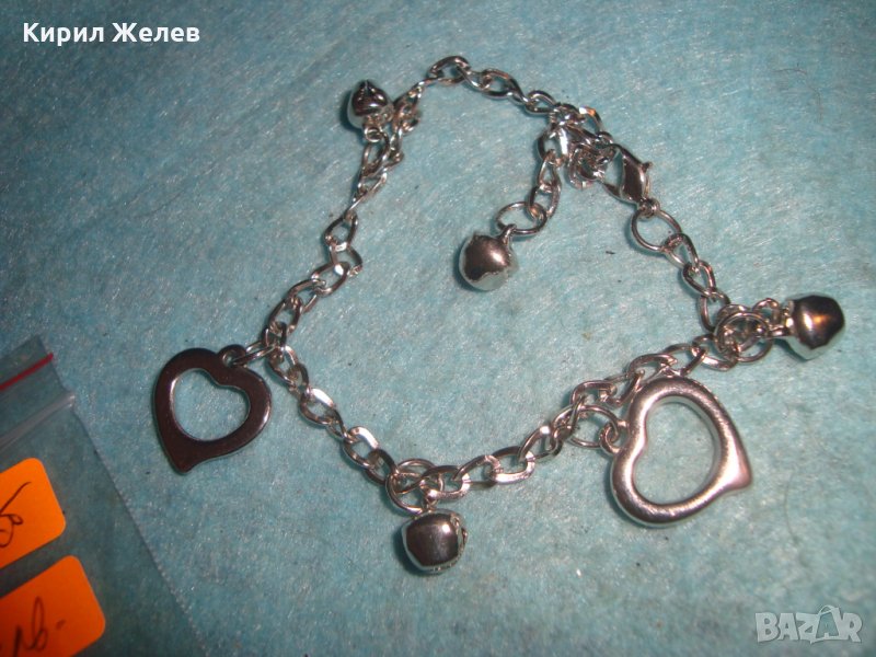 СРЕБРИСТА ГРИВНИЧКА със ЗВЪНЧЕТА и СЪРЧИЦА МНОГО СТИЛНА 27253