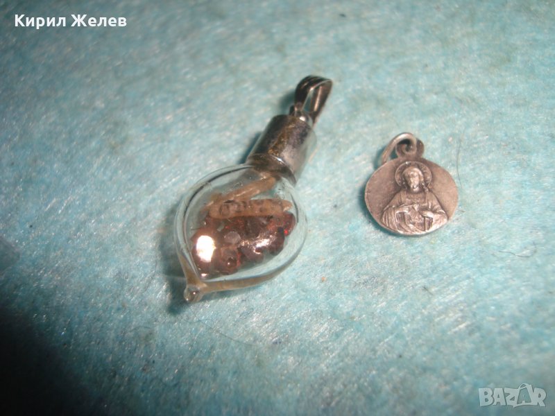 МИНИАТЮРНА СРЕБЪРНА или ПОСРЕБРЕНА ДВУСТРАННА ИКОНКА и СКЪПОЦЕННО МЕДАЛЬОНЧЕ със СКЪП.КАМЪЧЕТА 76131
