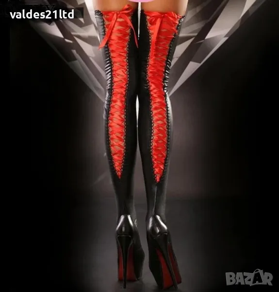 - Кожените жартиерни чорапи са дръзка и изискана част от дамското еротично облекло, които придават на визията силен и съблазнителен характер. Тези чорапи комбинират класическата естетика на жартиерите с доминиращия стил на кожата, създавайки аксесоар, който е идеален както за специални поводи, така и за ролеви игри. Идеални за създаване на смела и чувствена визия. Те са перфектни за специални случаи като романтични вечери, еротични фотосесии или ролеви игри. Предназначени за хора, които искат да изразят своята сексуалност и индивидуалност по уникален и дързък начин. Кожата като материал добавя усещане за лукс и мощ, което прави тези жартиерни чорапи предпочитан избор за смелите и уверени в себе си личности.