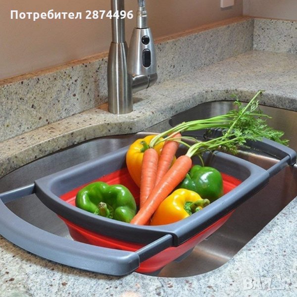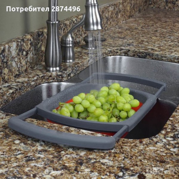Изключително полезен кухненски аксесоар! Бързо и лесно изплакване на плодове и зеленчуци, изцеждане на излишната вода от тенджерата, без да се налага да държите гевгира, без разливане на вода навсякъде и без опасност от изгаряне!